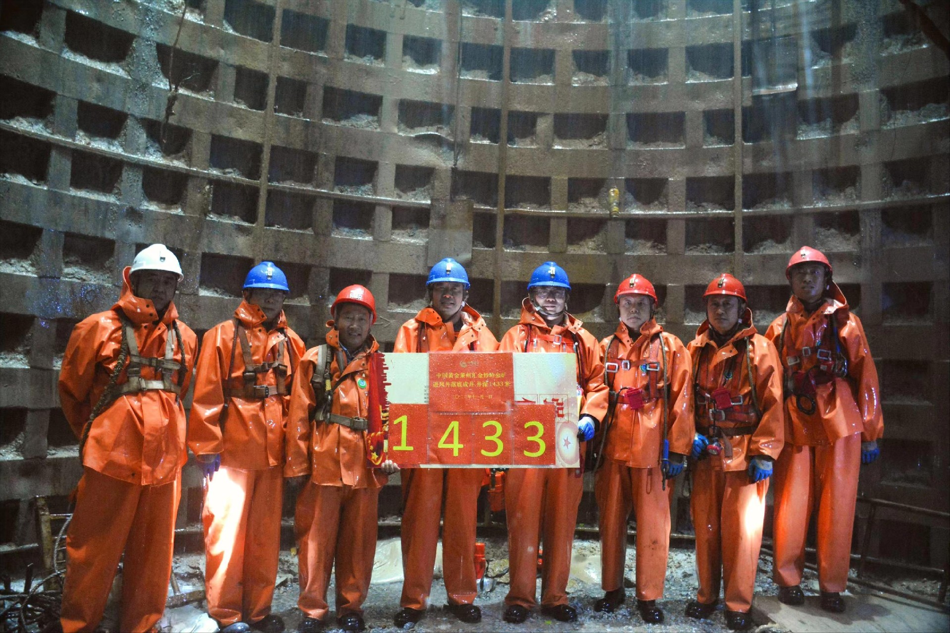 汇金项目部承建的沙岭金矿进风井井筒安全落底。1433m的施工深度为美高梅超深竖井施工又写下了浓墨重彩的一笔